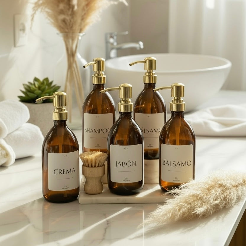 Pack cinco dispensadores ámbar vidrio