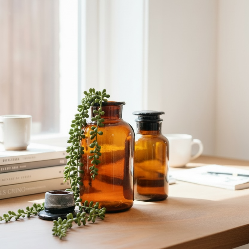 Frasco boticario vidrio ámbar