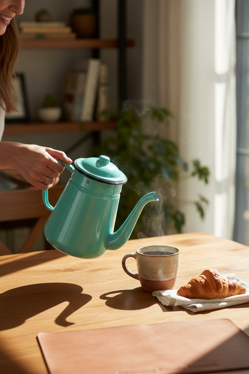 Tetera turquesa enlozada