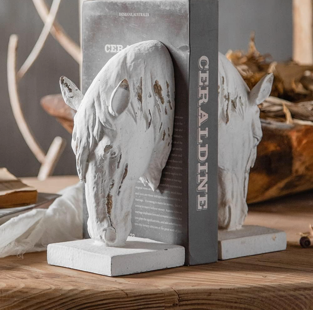 Set de dos caballos sujetalibros de resina. Acabado envejecido desgastado.