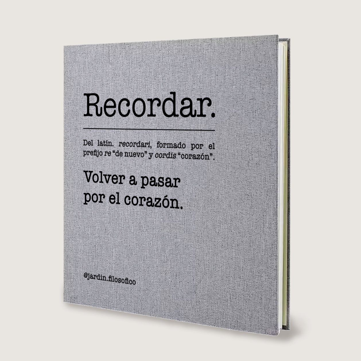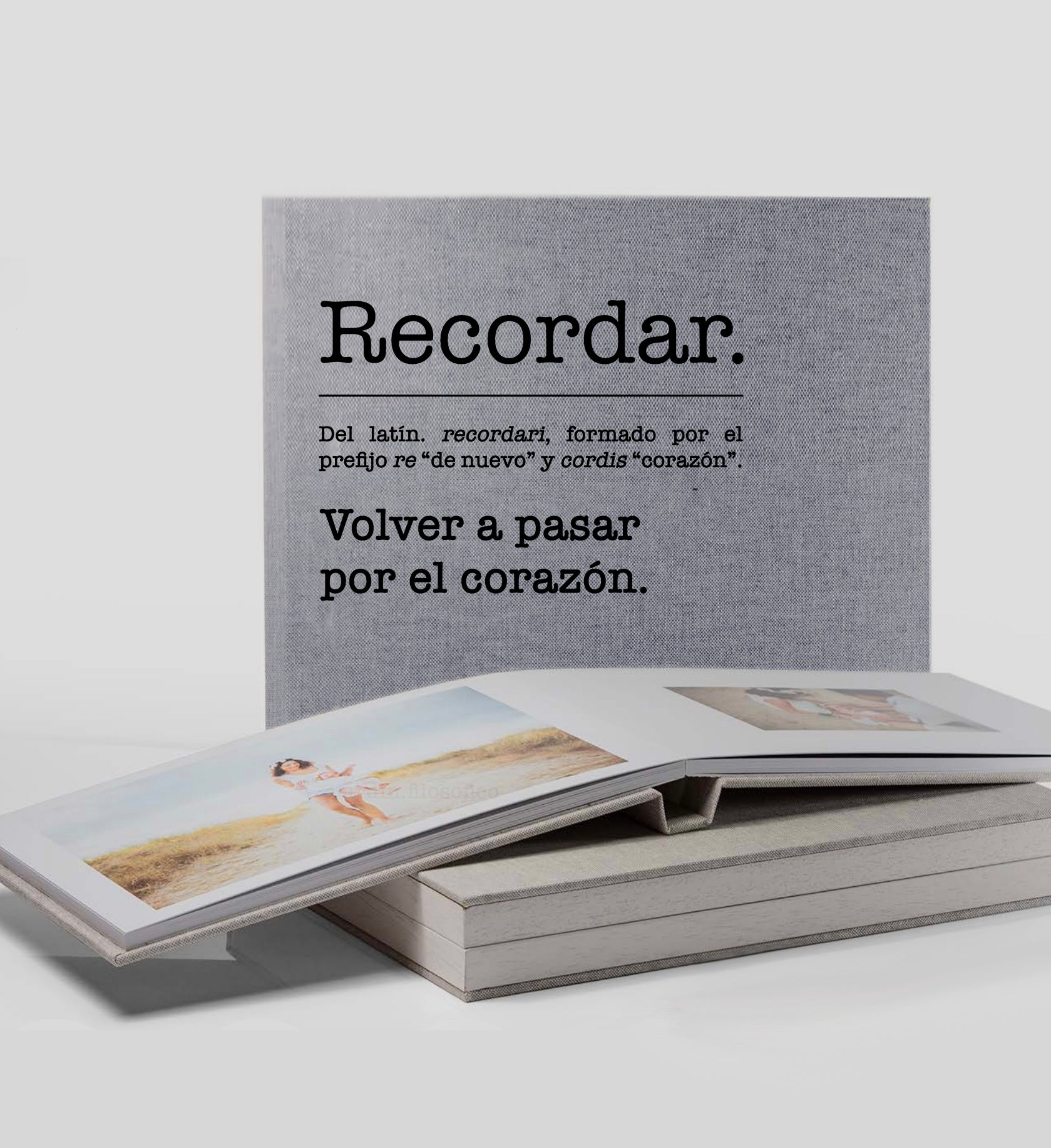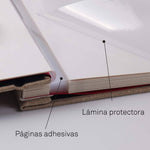 Álbum de fotos tapa dura forrada en lino estampado manualmente en serigrafía.