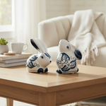 Conejo cerámica blanco azul