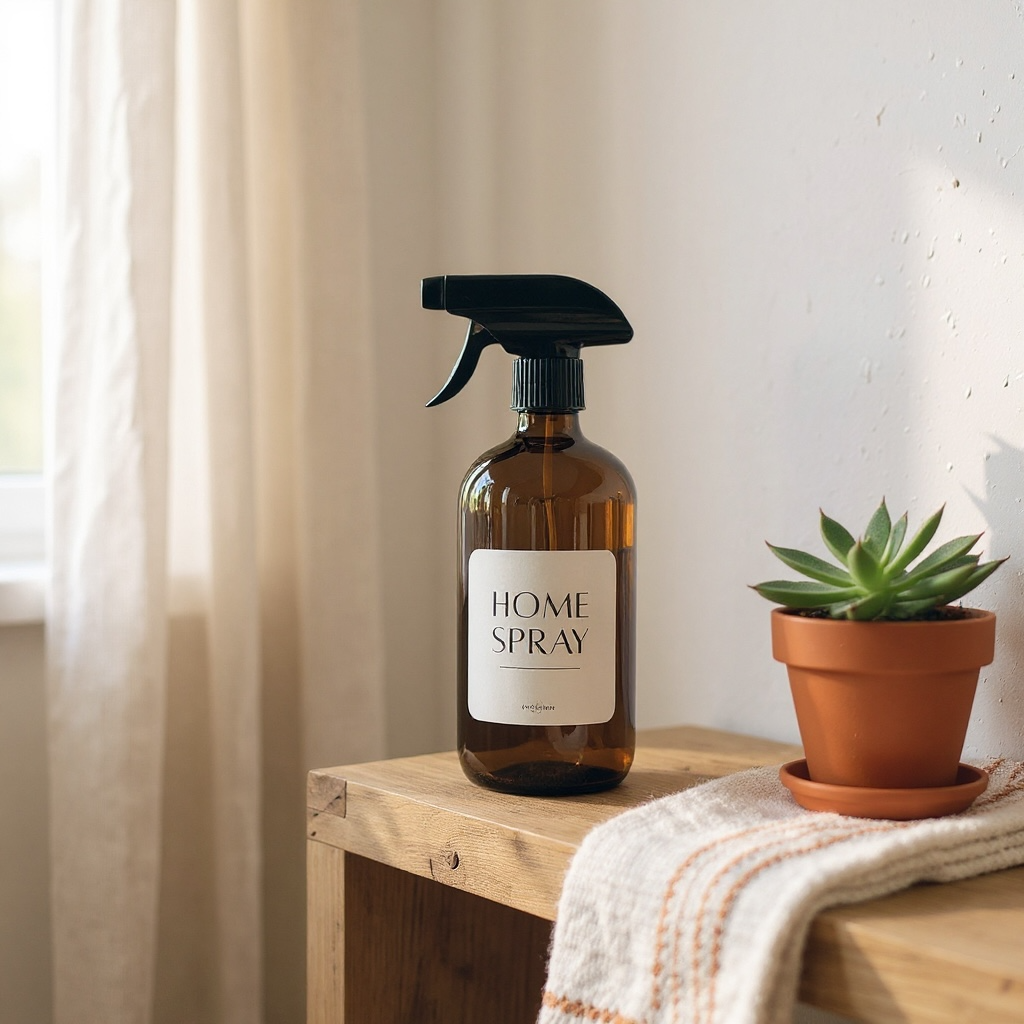 Dispensador / rociador / pulverizador de agua / aroma en spray de vidrio color ámbar.